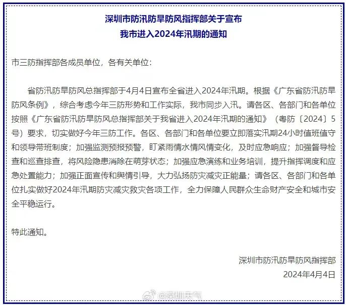 宣布深圳进入2024年汛期