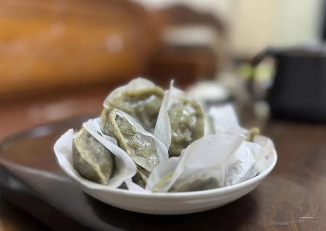 架上一灶柴火,铺好清明粿上锅蒸,热气弥漫四散……水开20分钟后,清明粿蒸熟了,挺着圆滚滚的肚子躺在簸箕里,煞是可爱。趁热咬上一口软糯的清明粿,鼠壳草的清香混着馅料的咸鲜,带来这个季节独有的味道和无比满足的喜悦。