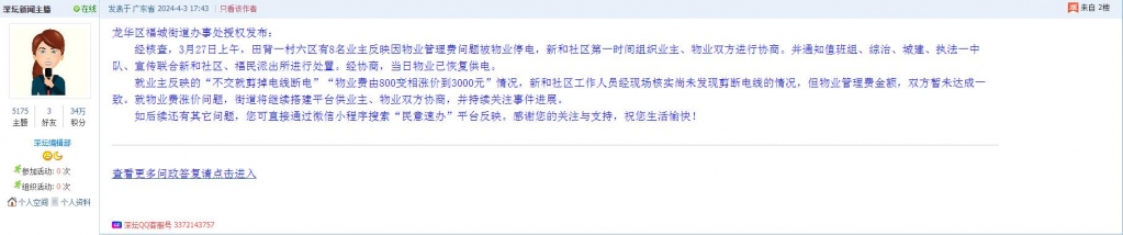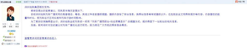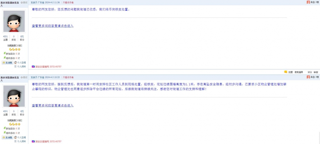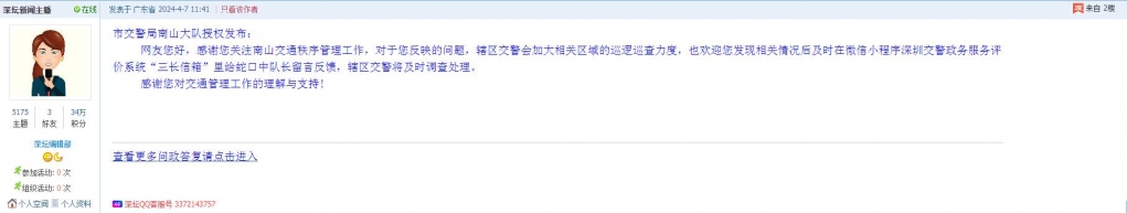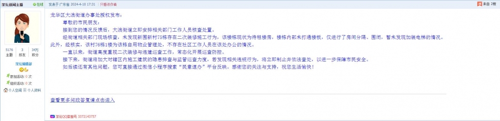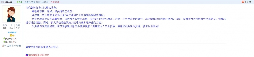 各职能单位如需对网友反映的问题进行回应,可在深圳论坛注册官方账号并通过认证,回帖进行回应。