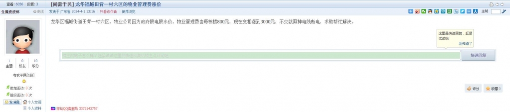 6、帖文《龙华福城田背一村六区的物业管理费涨价》