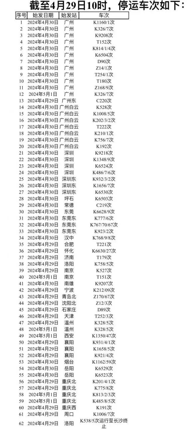 此轮暴雨影响范围较大,铁路部门将根据暴雨影响程度,研判安全风险,后续可能对京九铁路和京广高铁部分列车采取停运和折返运行措施,请广大旅客密切关注12306网站信息或铁路部门公告。待此轮暴雨影响结束后,铁路部门将视客流需求情况加开列车。