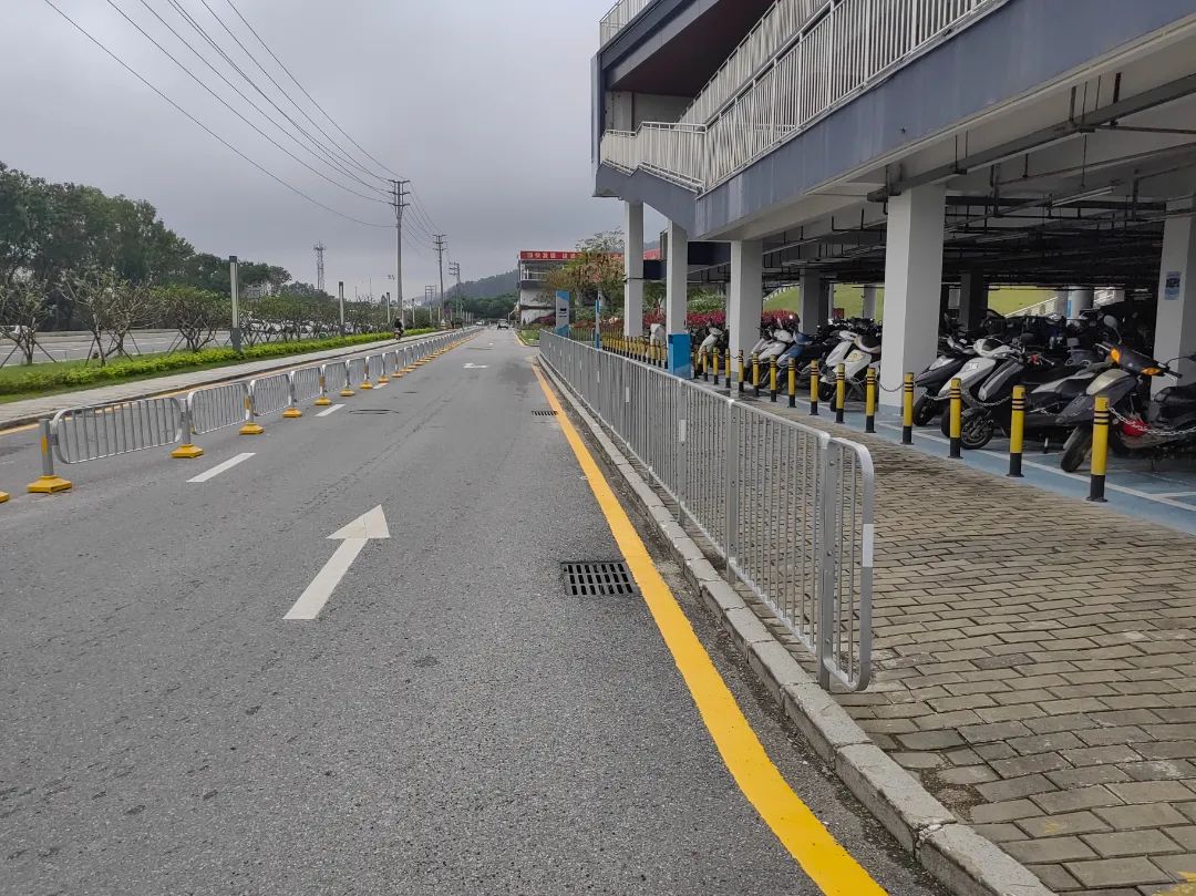 在内部道路加装路中护栏和路侧护栏做到“机非隔离”,合理规划人流、车流动线,确保行车安全性和通行效率“双提升”。