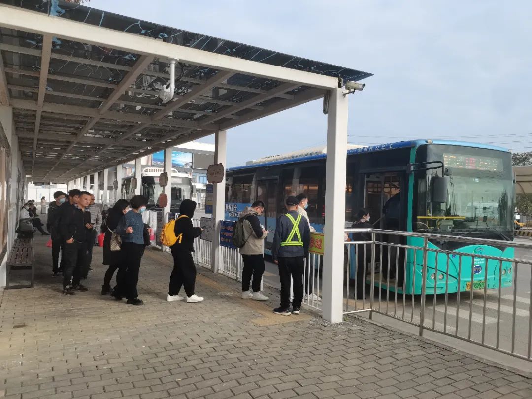 △返区旅客有序排队乘坐公交