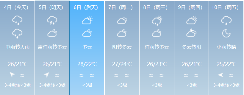 据市气象局深汕气象工作组消息,预计4-5日,深汕阴天间多云,有(雷)阵雨,部分时间雨势较大;6-7日多云为主,局地有短时阵雨,部分时间可见阳光。
