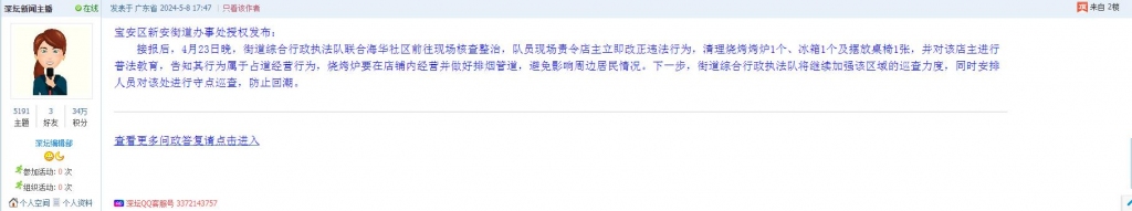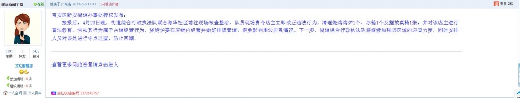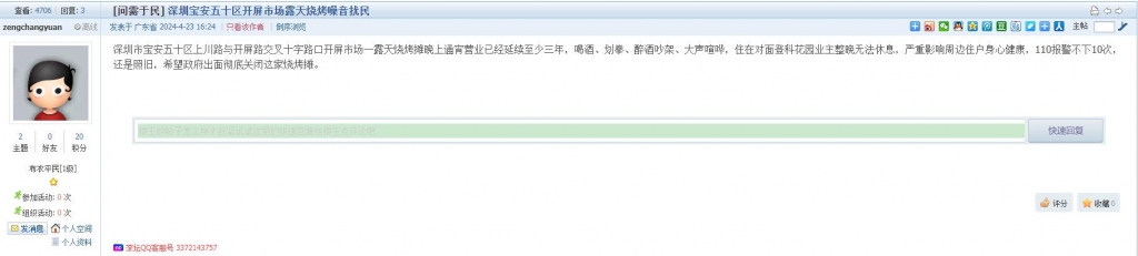 10、帖文《深圳宝安五十区开屏市场露天烧烤噪音扰民》