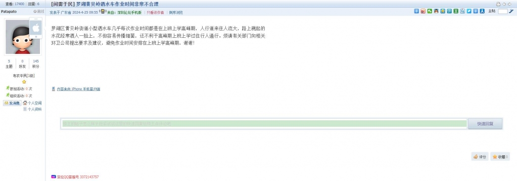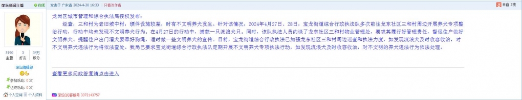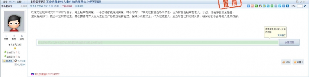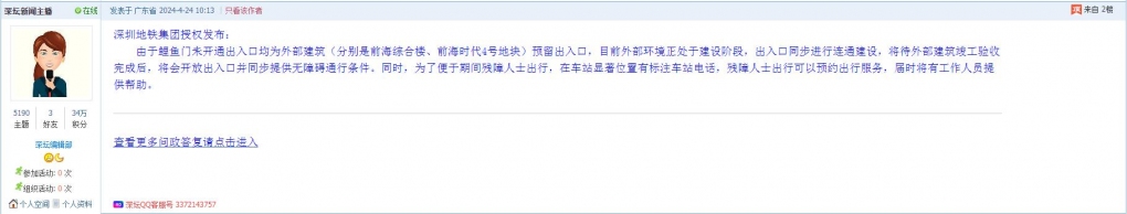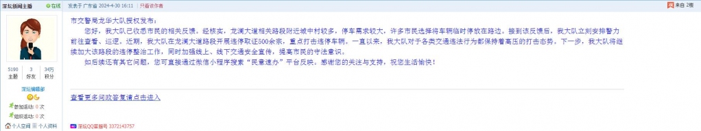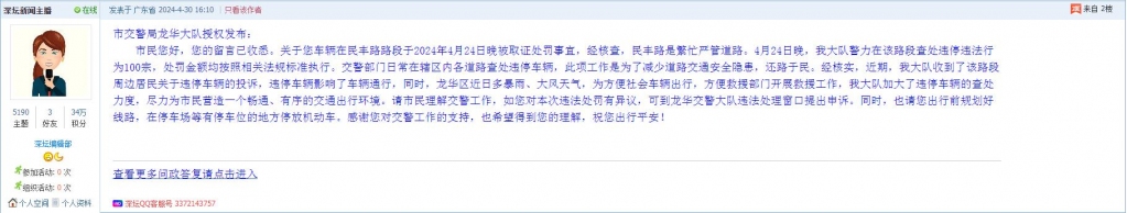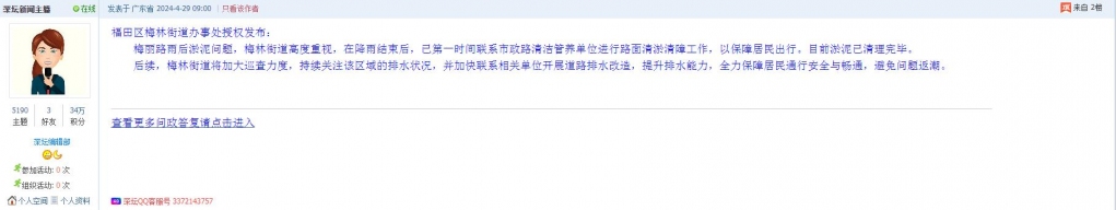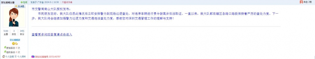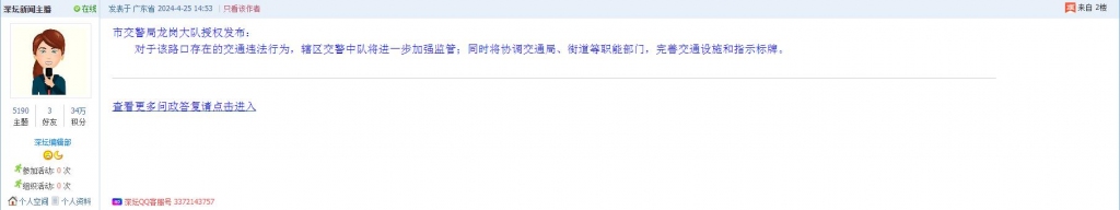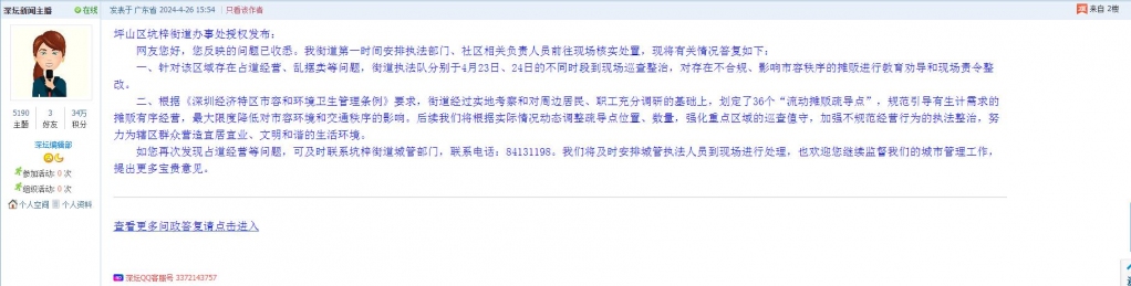 各职能单位如需对网友反映的问题进行回应,可在深圳论坛注册官方账号并通过认证,回帖进行回应。