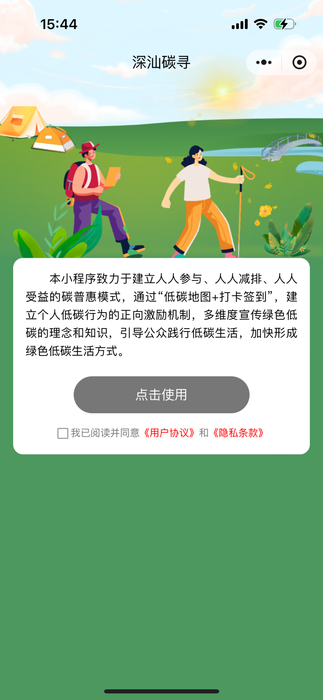 公众通过微信小程序搜索“深汕碳寻”小程序或扫描下方二维码,注册登录后即可开启签到打卡,不仅可以获得碳积分,还能线上“云游”深汕低碳景点。