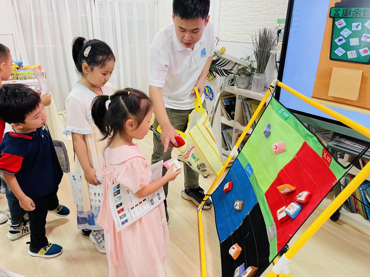 紧接着,小朋友带着分类知识井然有序地在模拟投放桶和分类“沙包”前,动手进行一场“趣”分类,以寓教于乐的方式,巩固小朋友对分类知识的理解,学分类,会分类,进一步提高小朋友的垃圾分类知识储备。