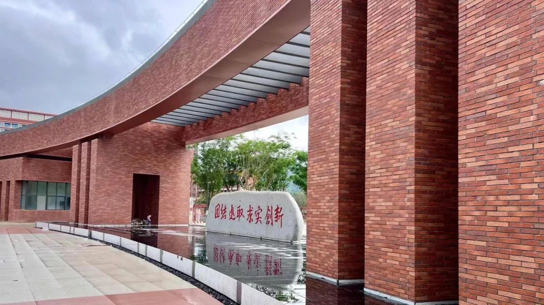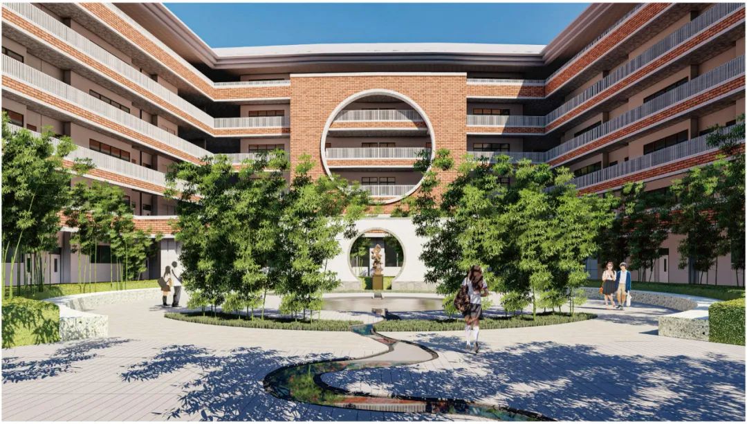建筑外墙沿用具有深中特色的红砖材料,同时根据三所不同学校采取不同色系打造学习空间,彰显出深中高中园统一谐调,和而不同的人文气质。