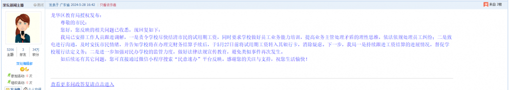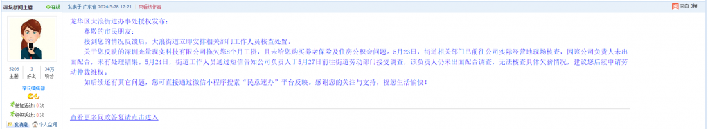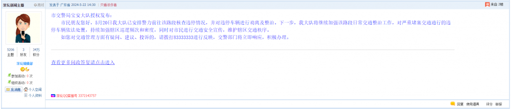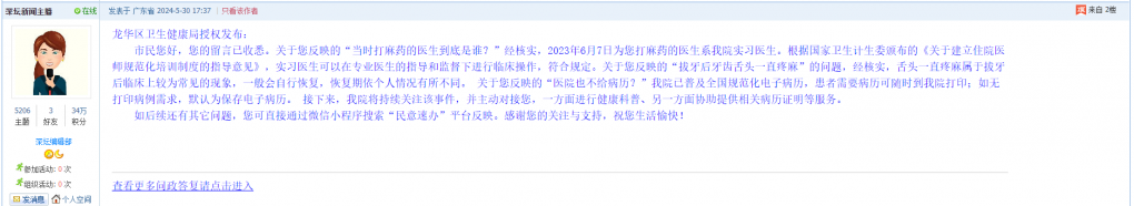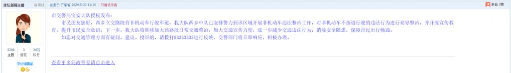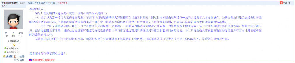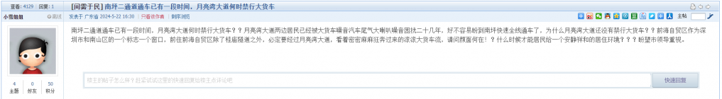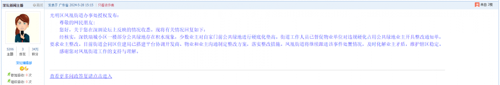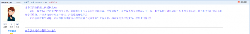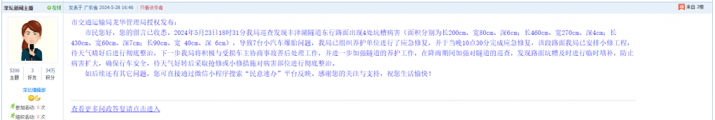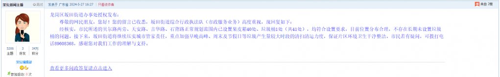 各职能单位如需对网友反映的问题进行回应,可在深圳论坛注册官方账号并通过认证,回帖进行回应。