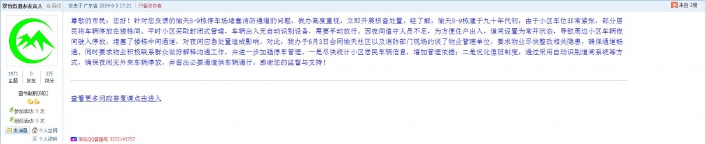 各职能单位如需对网友反映的问题进行回应,可在深圳论坛注册官方账号并通过认证,回帖进行回应。