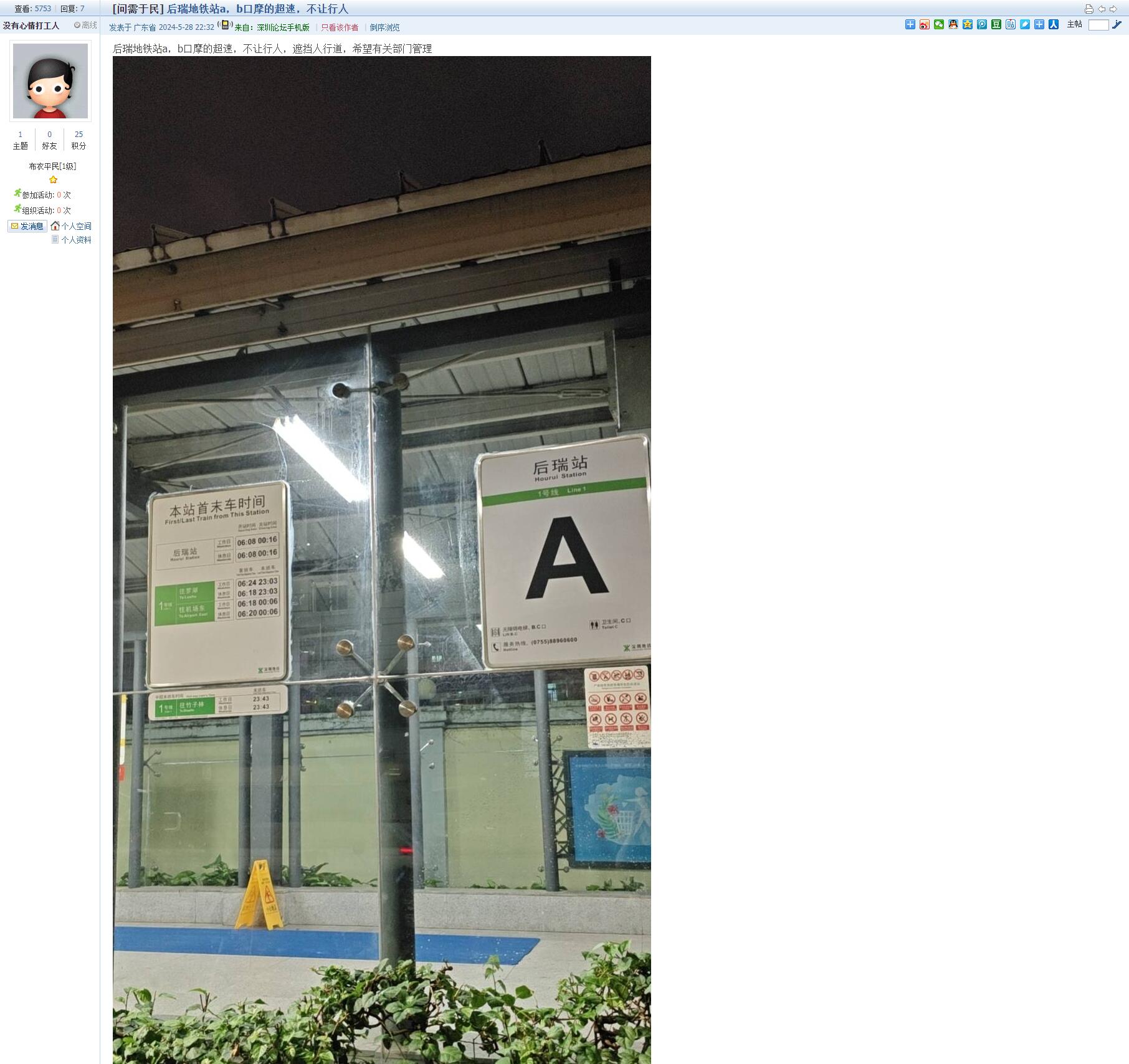 5、帖文《后瑞地铁站a,b口摩的超速,不让行人》