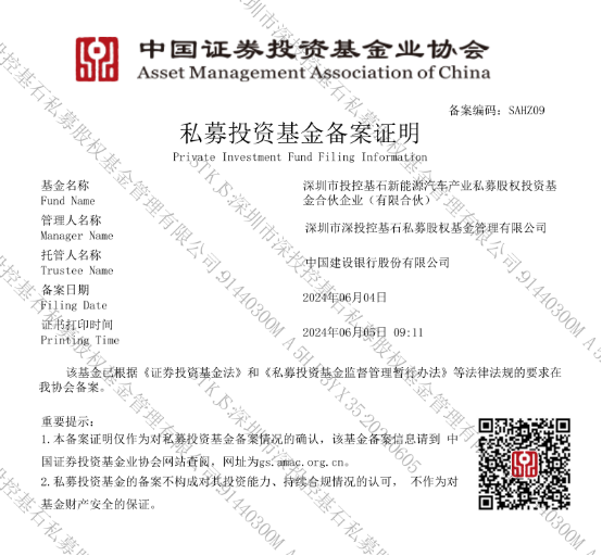 (以下简称“深圳市投控基石新能源汽车产业基金”)