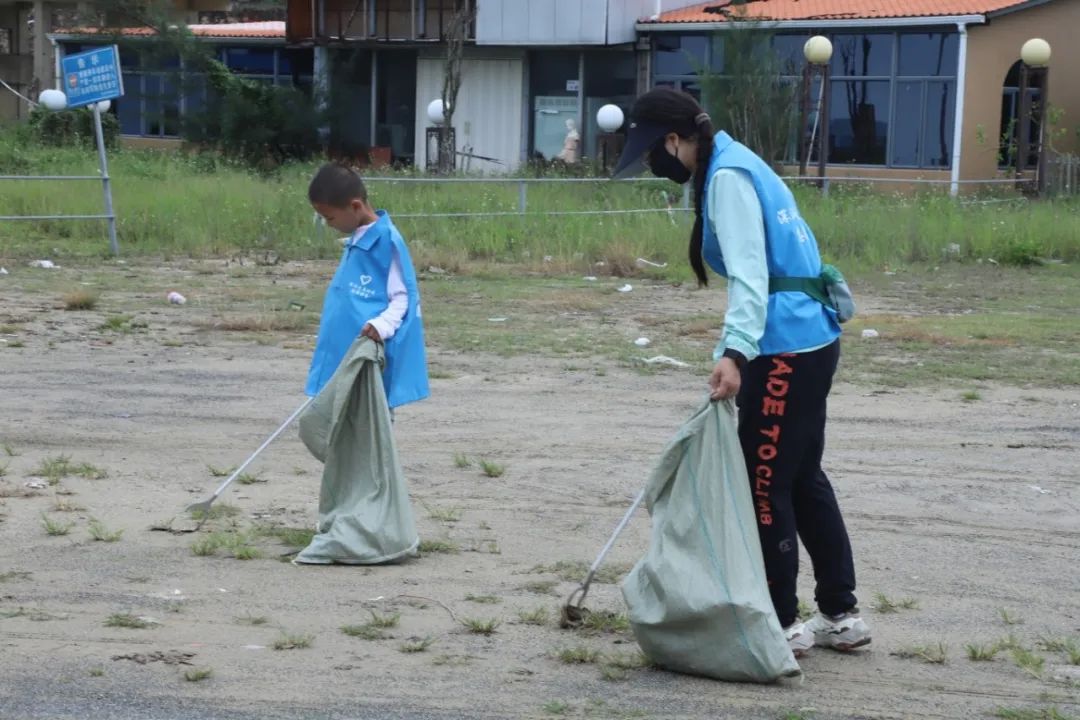 现场还有志愿者妈妈带着9岁大的孩子一起拾捡垃圾,母子牵手共同守护蓝色海洋。