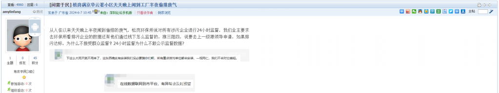 13、帖文《松岗满京华云著小区天天晚上闻到工厂半夜偷排废气》