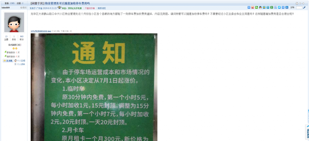 14、帖文《物业管理处可以随意加收停车费用吗》
