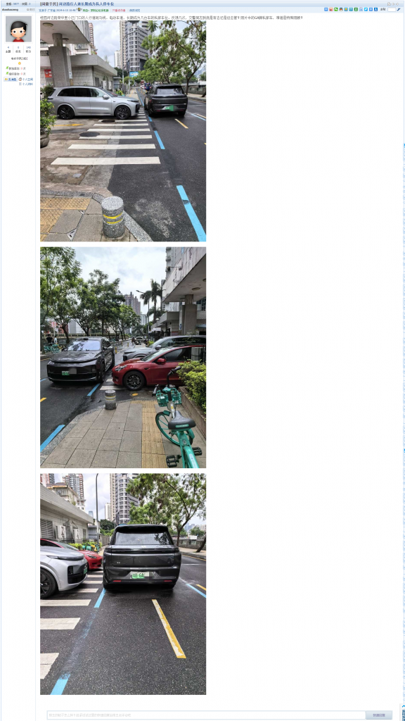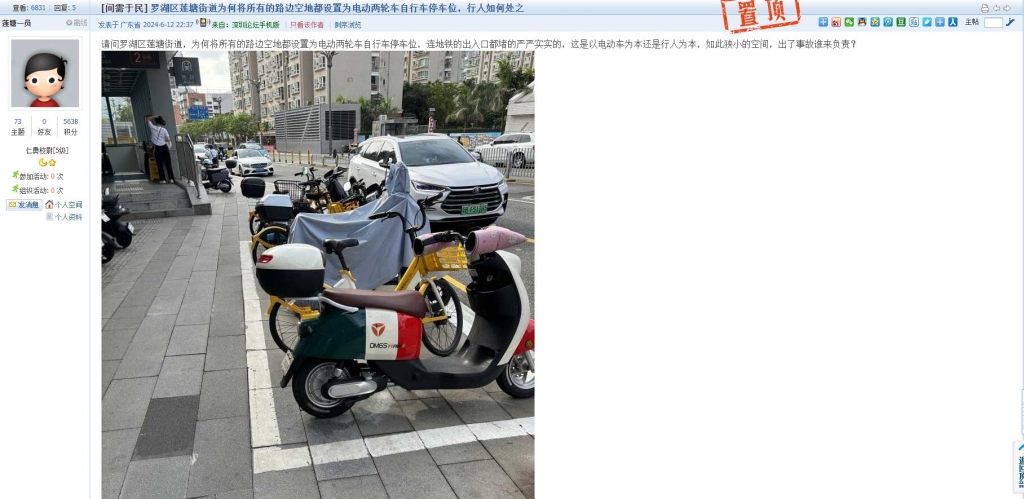 10、帖文《罗湖区莲塘街道为何将所有的路边空地都设置为电动两轮车自行车停车位,行人如何处之》