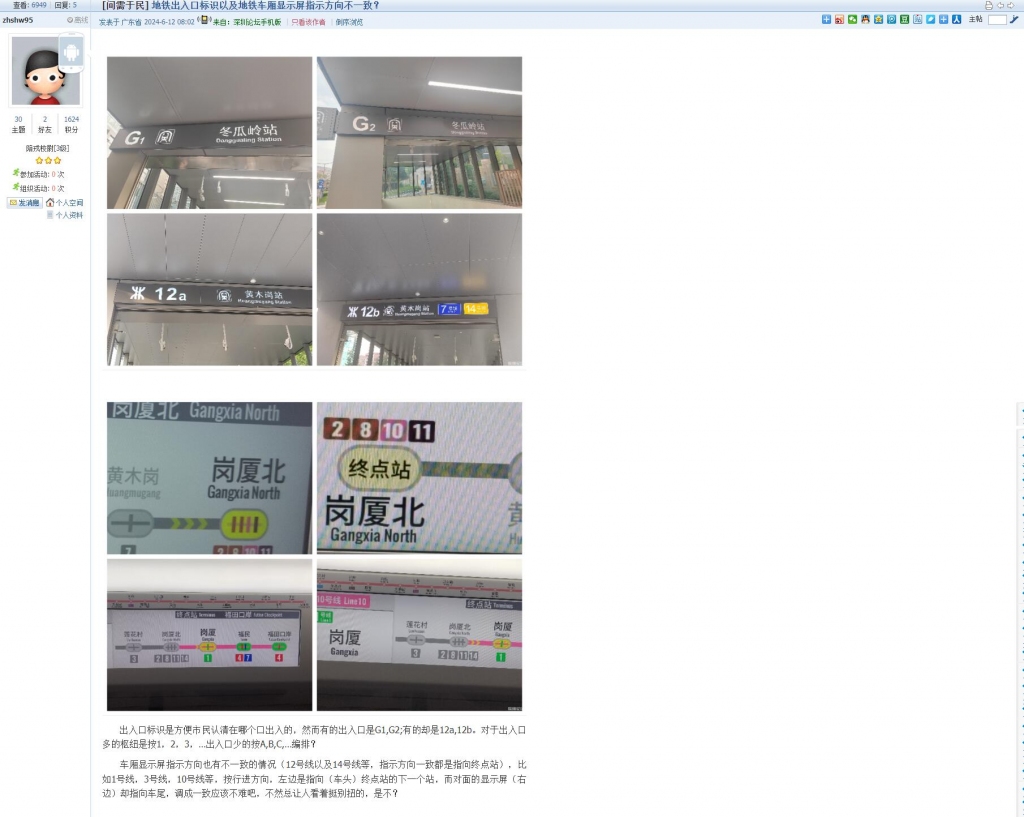 6、帖文《地铁出入口标识以及地铁车厢显示屏指示方向不一致?》