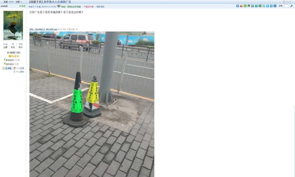 8、帖文《龙华街头人行道的广告》