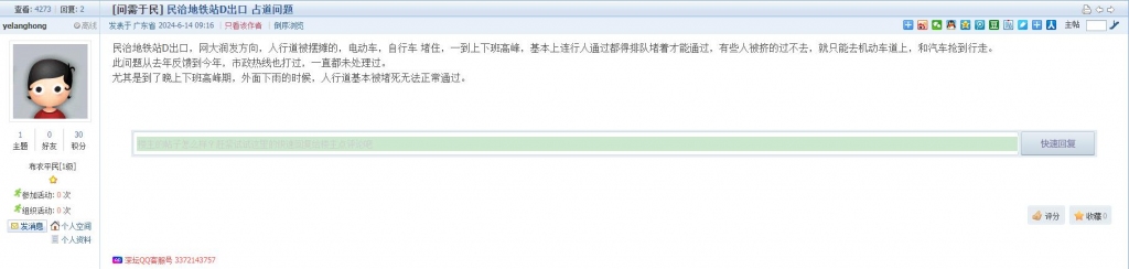 15、帖文《民治地铁站D出口 占道问题》