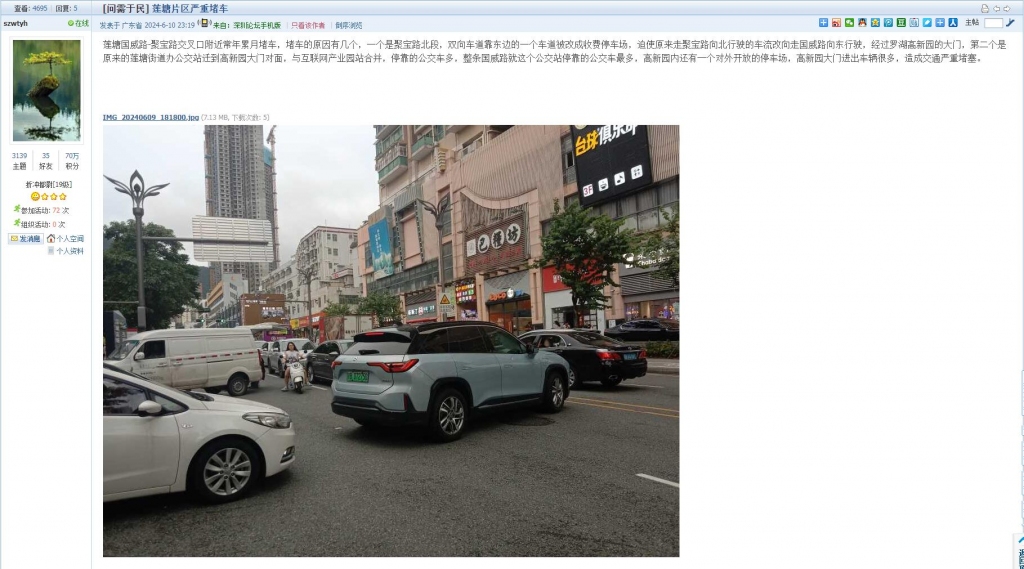 1、帖文《莲塘片区严重堵车》