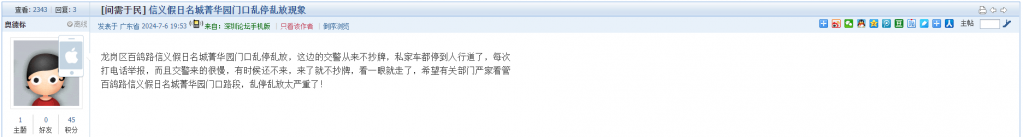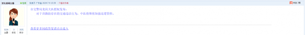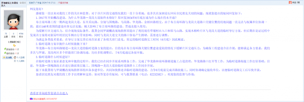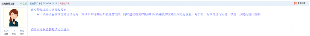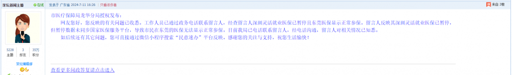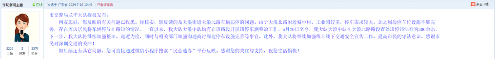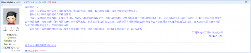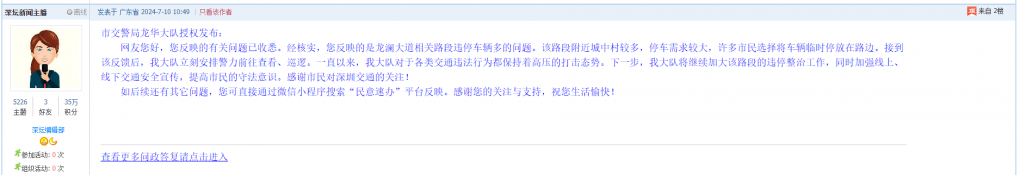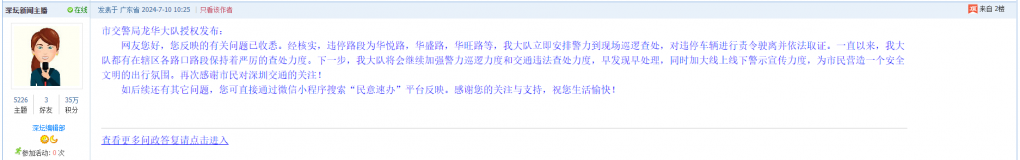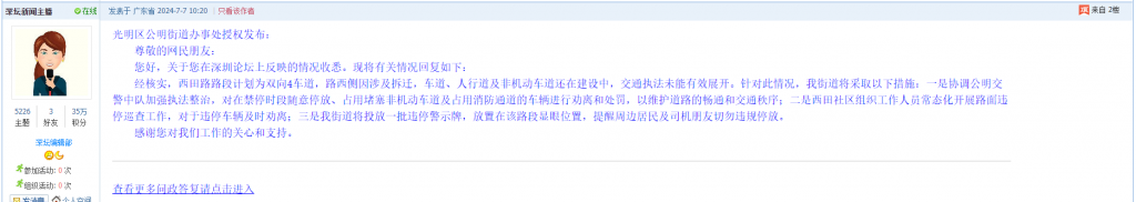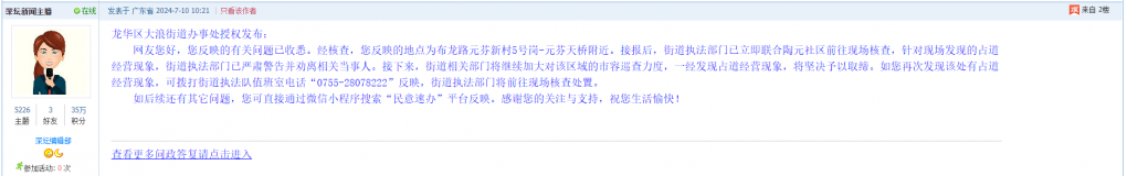 各职能单位如需对网友反映的问题进行回应,可在深圳论坛注册官方账号并通过认证,回帖进行回应。
