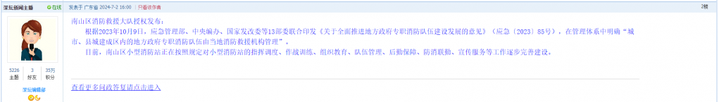 3. 帖文《南山区消防救援大队收编小型应急管理站》