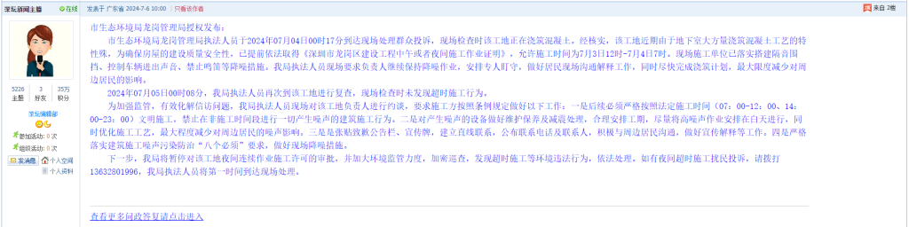 6. 帖文《龙岗区龙岗大道-西埔路工地半夜扰民》