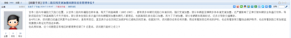 5. 帖文《甘李二路实线变道加塞问题有没有管理单位?》