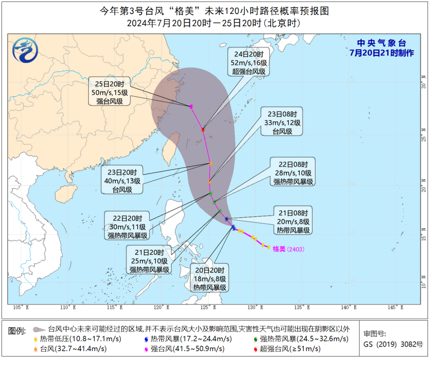 在20日14时,菲律宾以东洋面的热带低压加强为今年第3号台风“格美”(热带风暴级)。