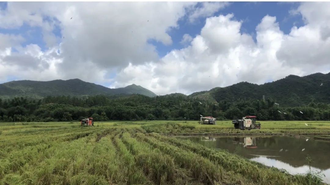盛夏时节,深圳市深汕特别合作区早稻陆续进入成熟期,农户们抓住晴好天气抢收水稻,确保颗粒归仓,人与机械在田间地头展现出一幅美丽的丰收图景。