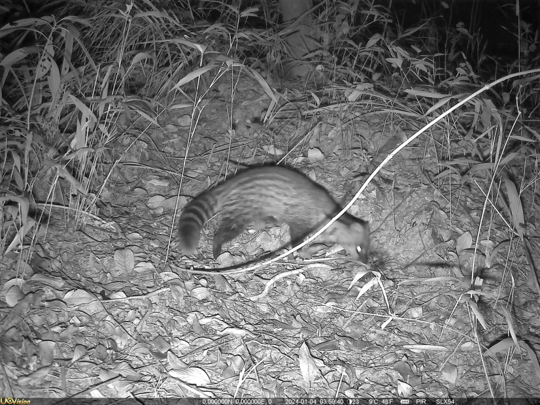 小灵猫俗称七间狸、乌脚狸、香狸,属于灵猫科、小灵猫属,多栖息于森林、灌丛、土丘、草丛,也常见于农业区和村庄附近,居住老树根下的洞穴,为独居夜行性动物,昼伏夜出;性格机敏而胆小,行动灵活,上半夜活动最频繁。
