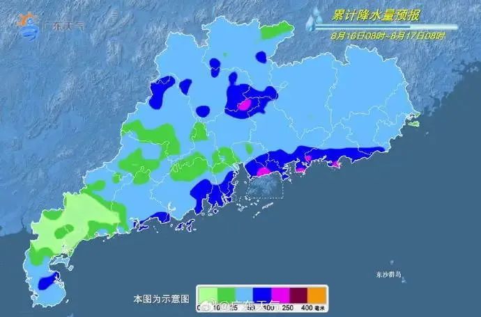 16日—17日雨势明显,珠三角、粤西北、粤西有大雨到暴雨局部大暴雨,其余市县有中(雷)雨局部大雨或暴雨,注意预防强降水、雷电、短时大风等强对流天气对户外作业、外出活动的影响。