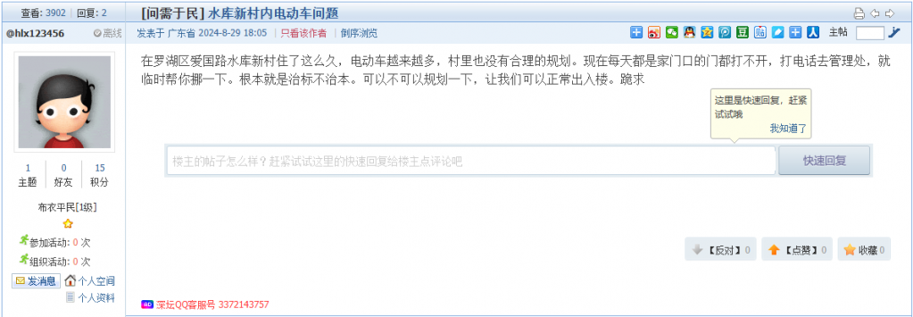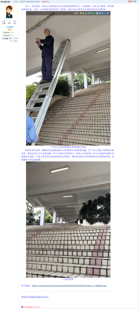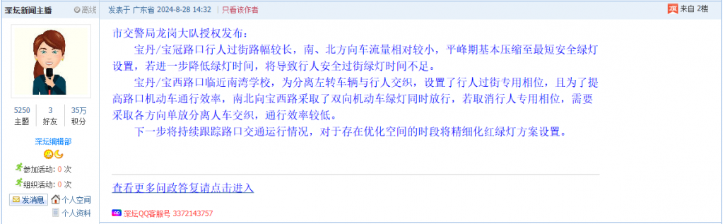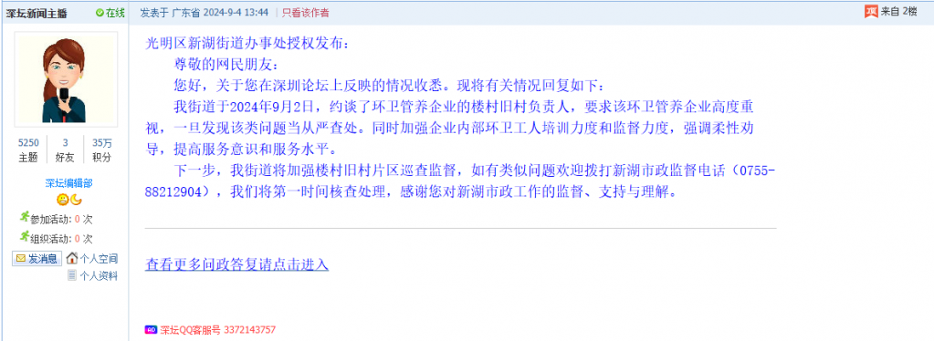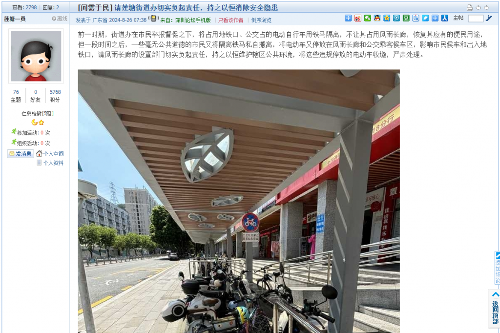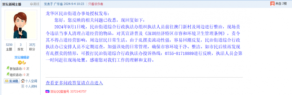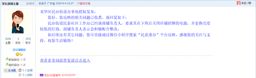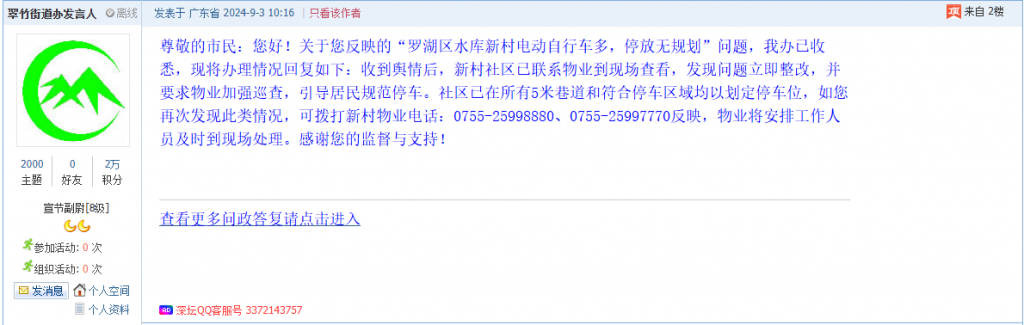 各职能单位如需对网友反映的问题进行回应,可在深圳论坛注册官方账号并通过认证,回帖进行回应。