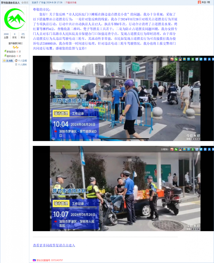 3. 帖文《翠竹街道乱摆卖更加严重已经公开化》