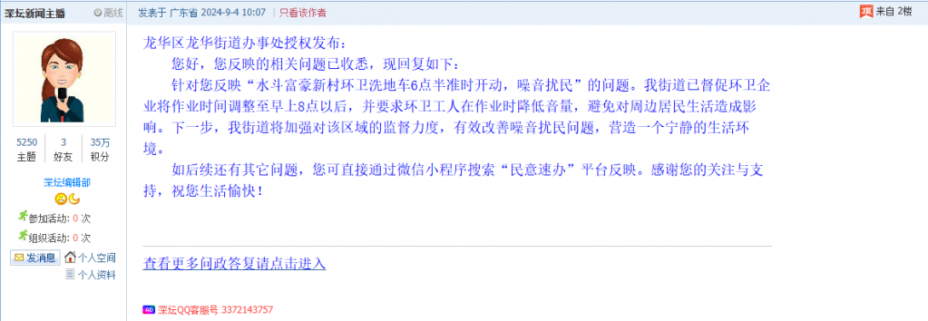 10. 帖文《水斗富豪新村六点半环卫洗地车扰民》