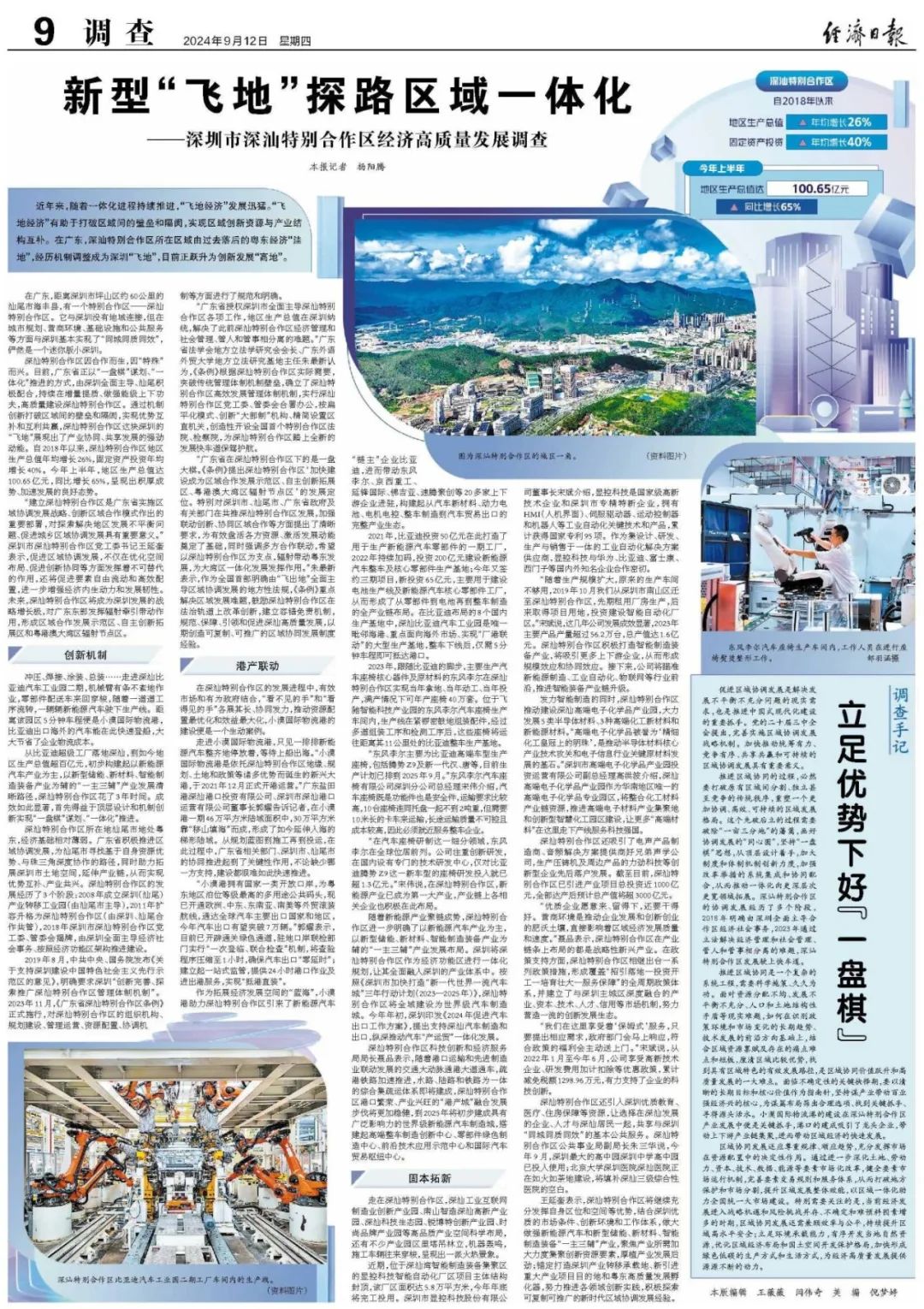 “广东省授权深圳市全面主导深汕特别合作区各项工作,地区生产总值在深圳纳统,解决了此前深汕特别合作区经济管理和社会管理、管人和管事相分离的难题。”