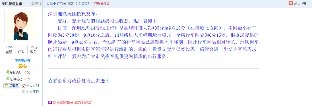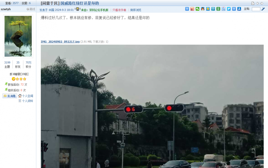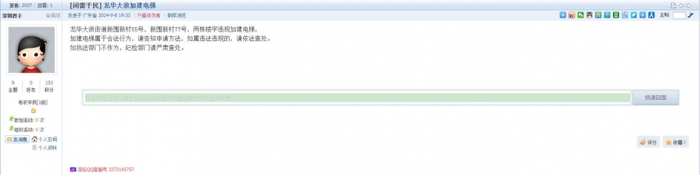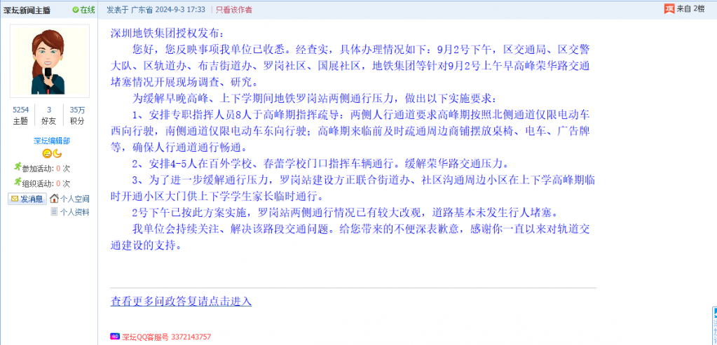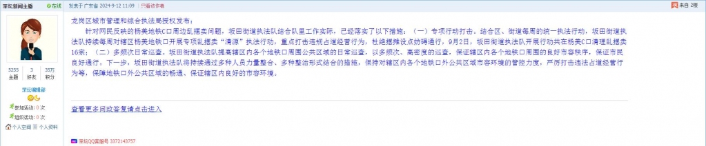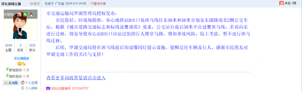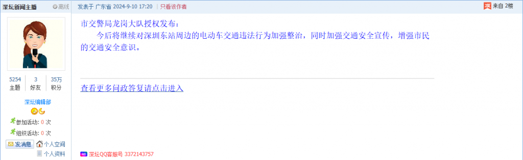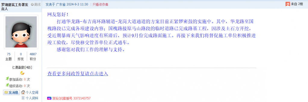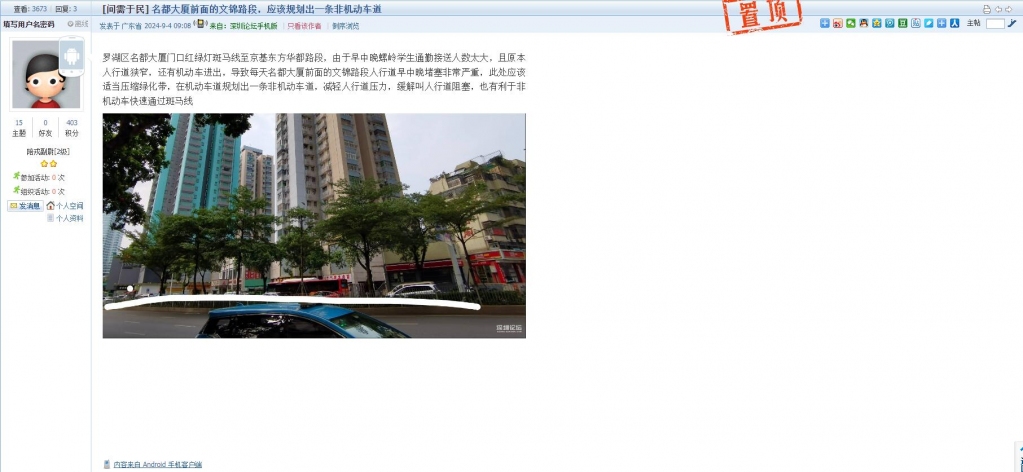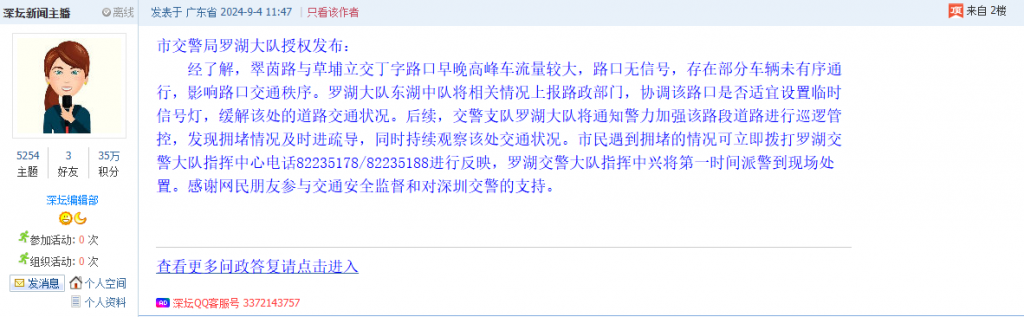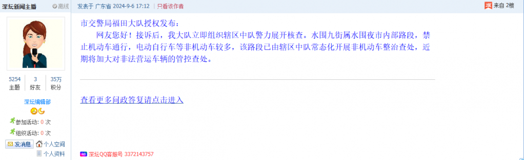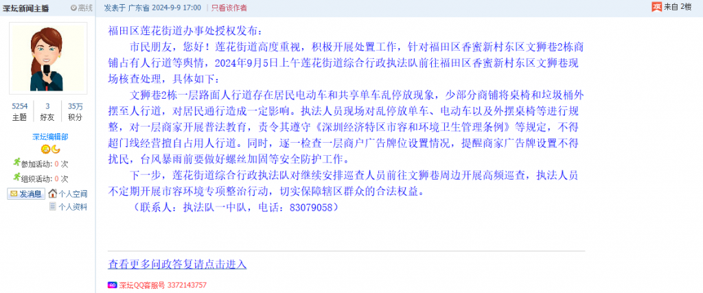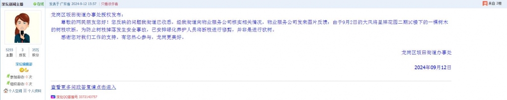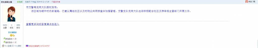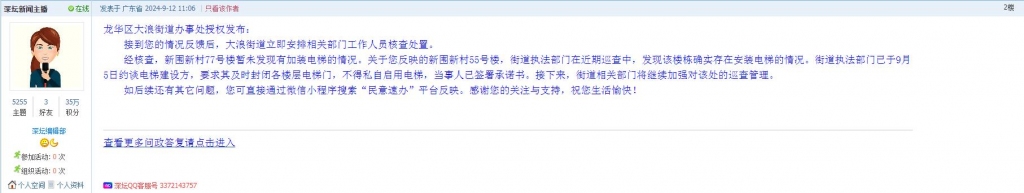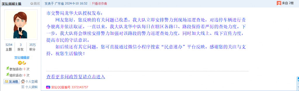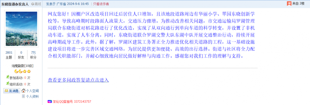 各职能单位如需对网友反映的问题进行回应,可在深圳论坛注册官方账号并通过认证,回帖进行回应。