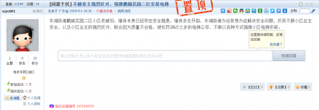 5. 帖文《不顾业主强烈反对,强推鹏城花园二区安装电梯》