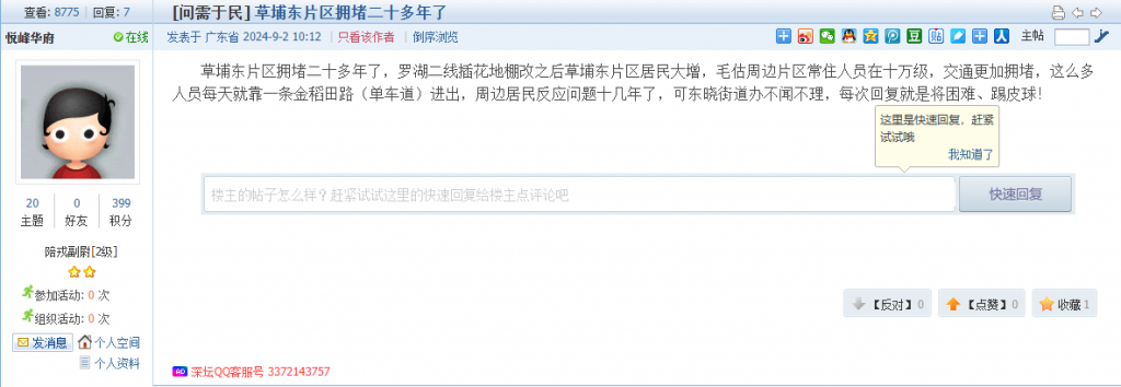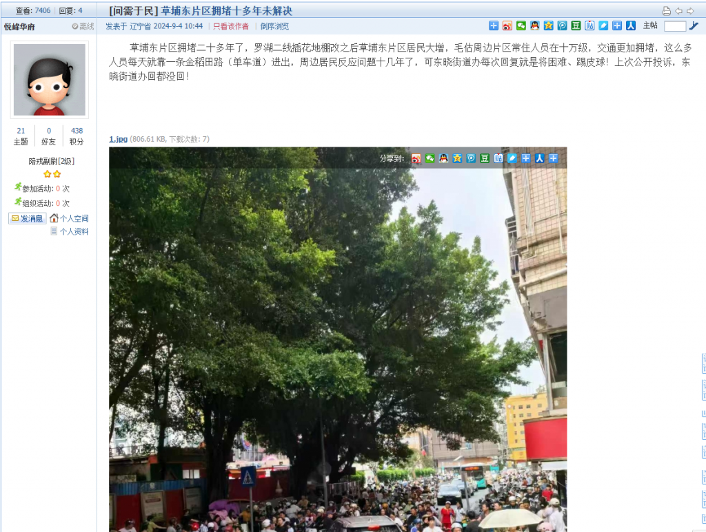 4. 帖文《罗湖区翠茵路与草埔立交丁字路口交通混乱拥堵》