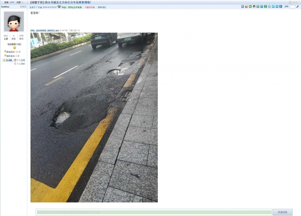 24. 帖文《南山书城北去方向公交车站要修缮啦!》