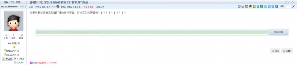 25. 帖文《宝安区新桥沙彼高工厂排放臭气噪音》