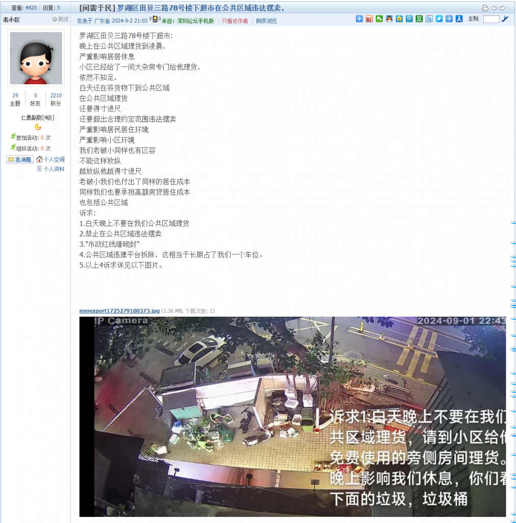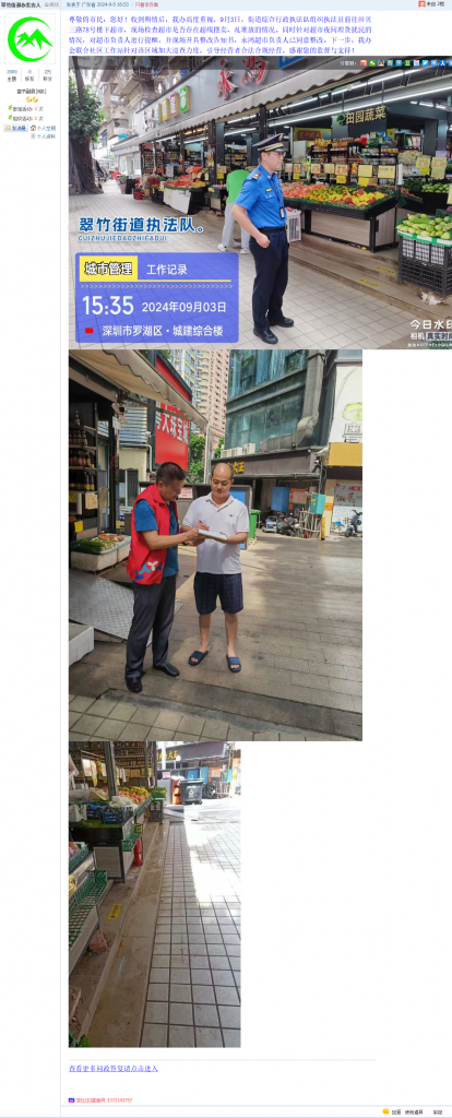 6. 帖文《罗湖区田贝三路78号楼下超市在公共区域违法摆卖,》