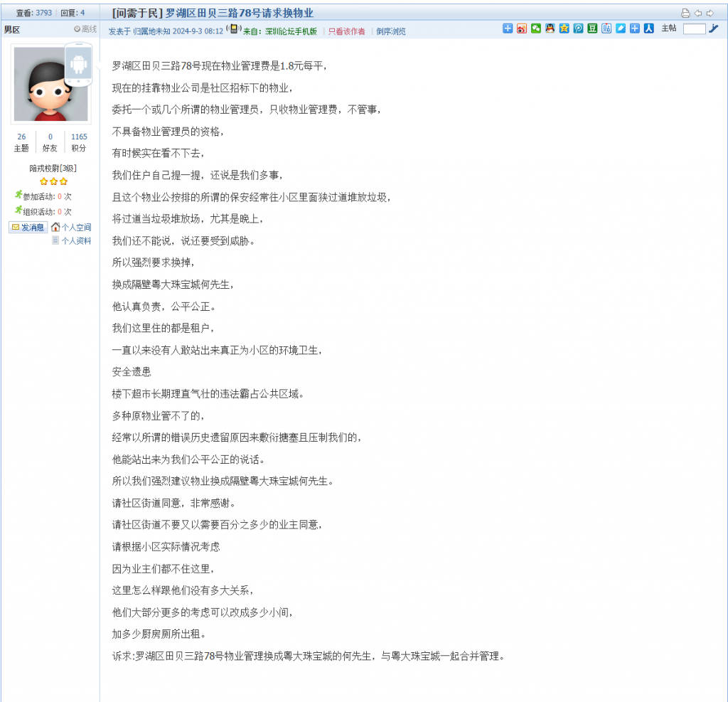 8. 帖文《罗湖区田贝三路78号请求换物业》