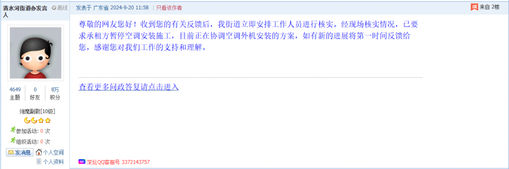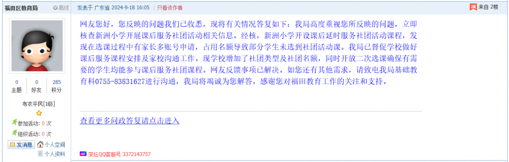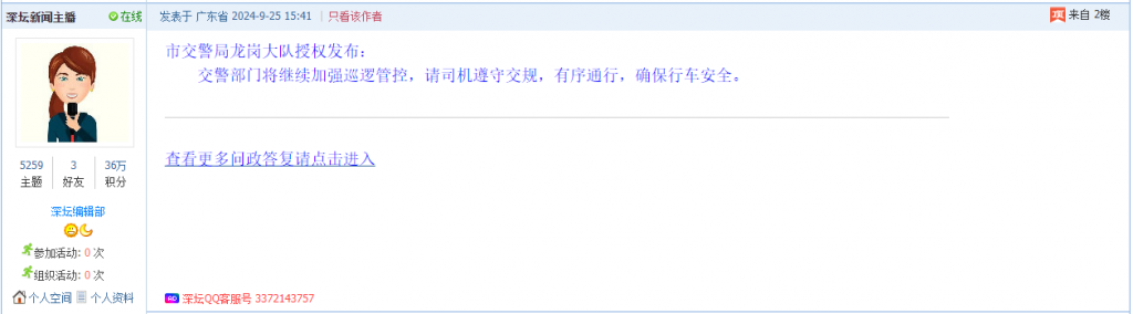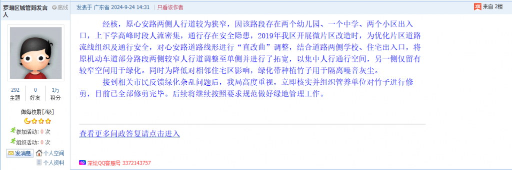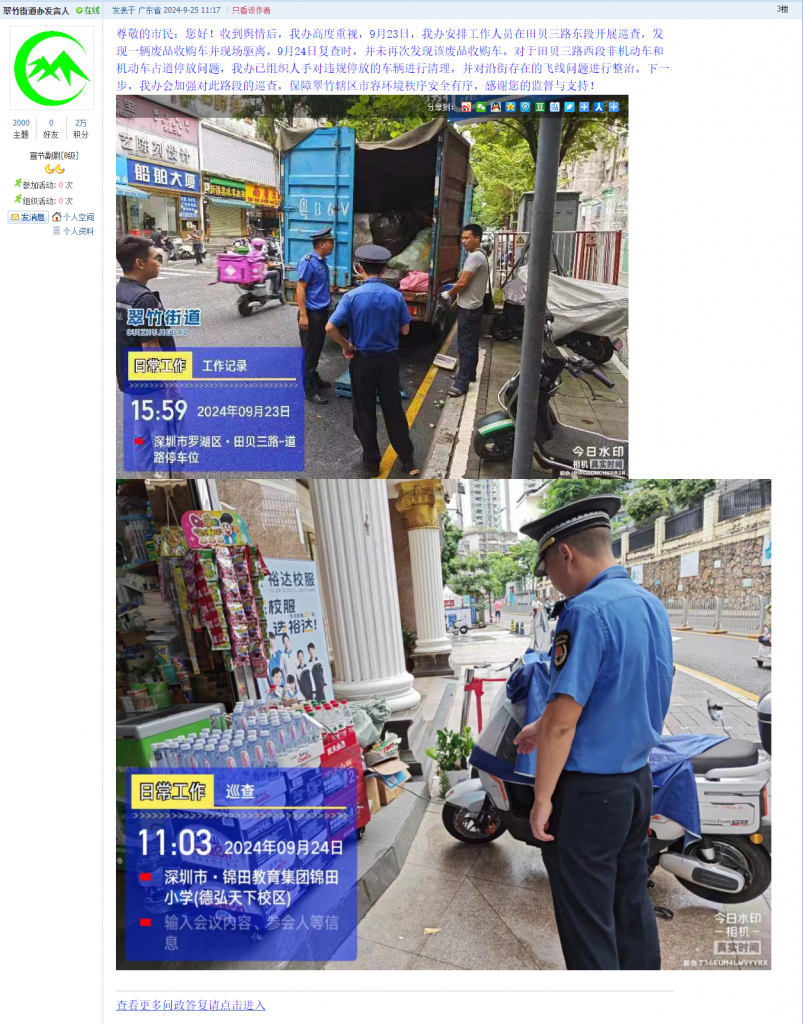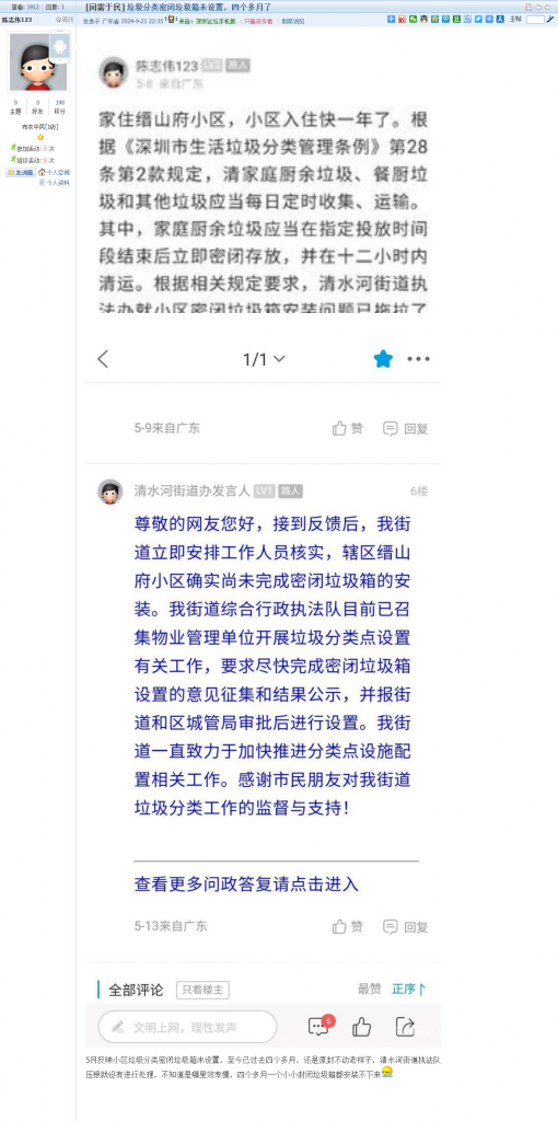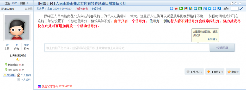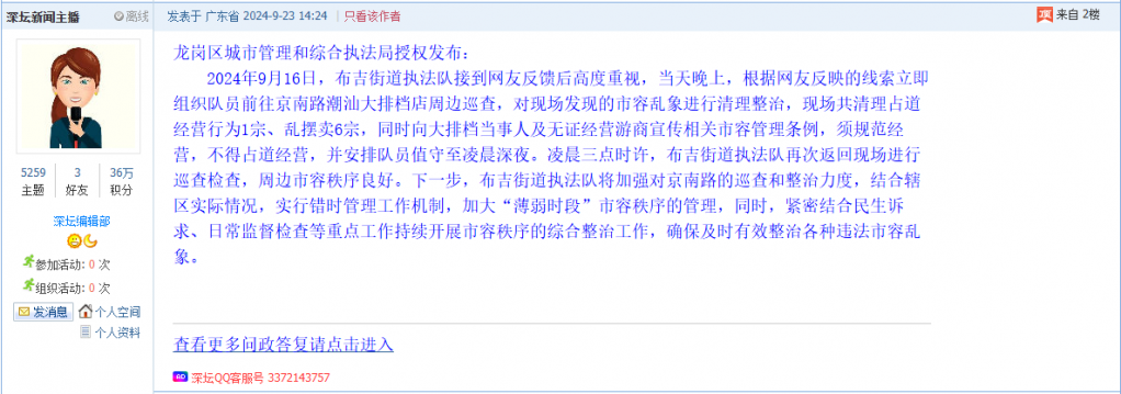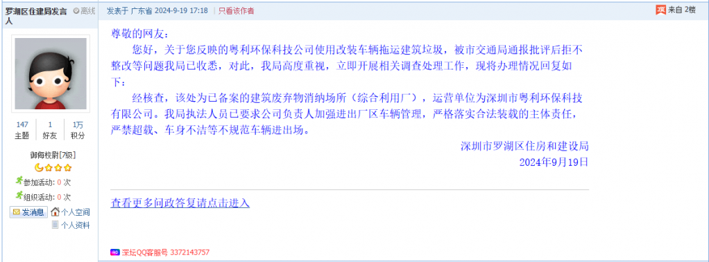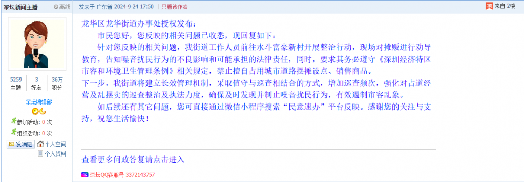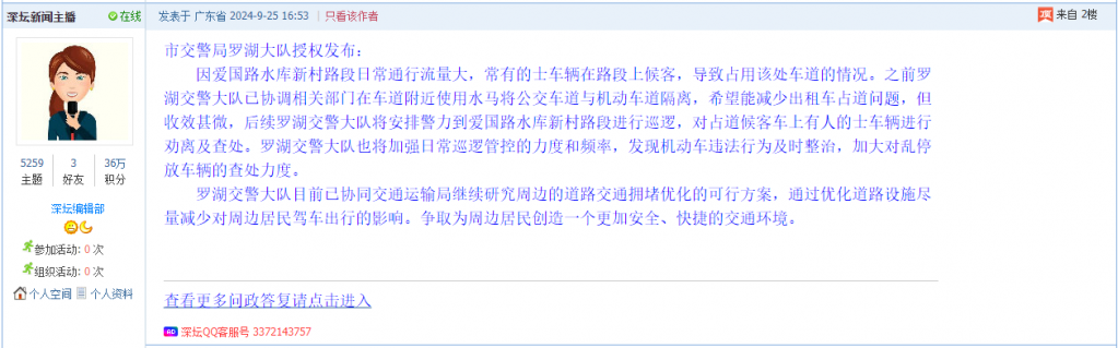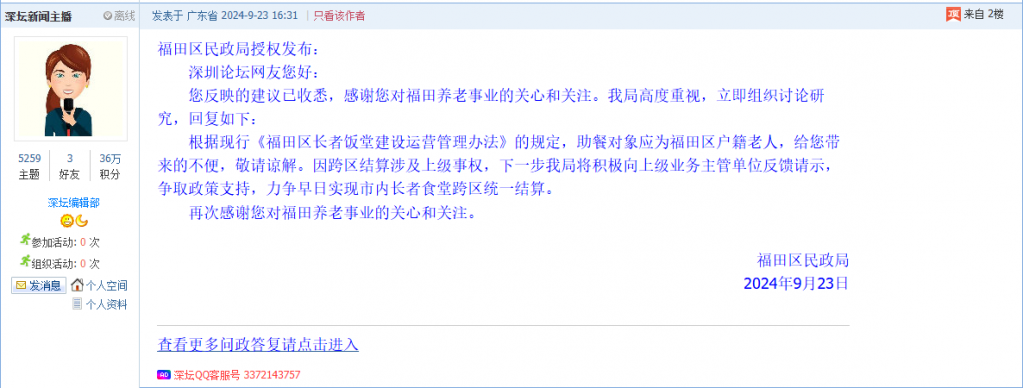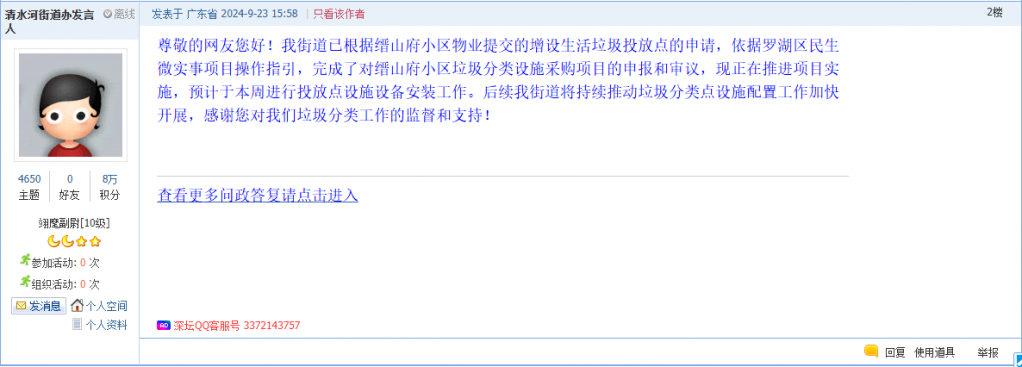 各职能单位如需对网友反映的问题进行回应,可在深圳论坛注册官方账号并通过认证,回帖进行回应。