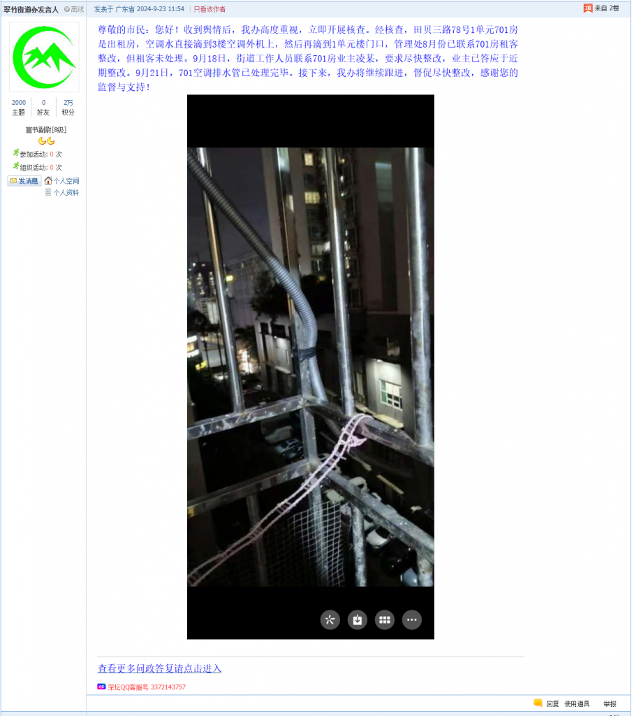 23. 帖文《罗湖缙山府空调外挂有安全隐患》
