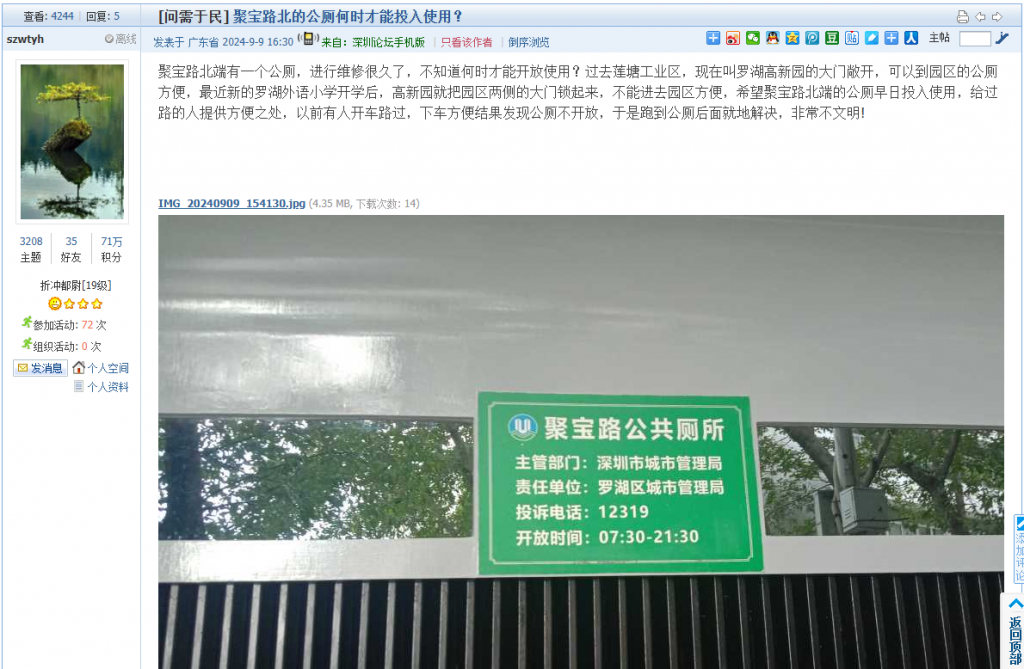 6. 帖文《聚宝路北的公厕何时才能投入使用?》