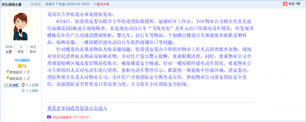 2. 帖文《龙岗区吉华街道丽湖花园3栋,严重消防隐患》