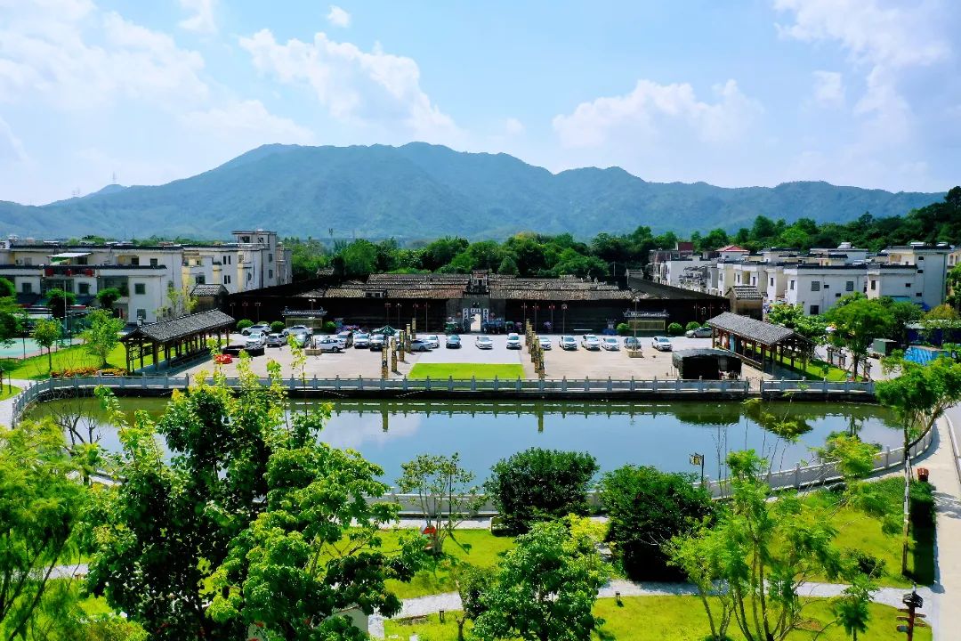 田野高楼相映、青山与绿水成趣