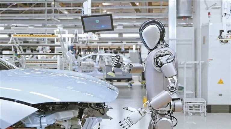 深企工业版人形机器人在新能源汽车工厂“实训”场景。图源:深圳特区报